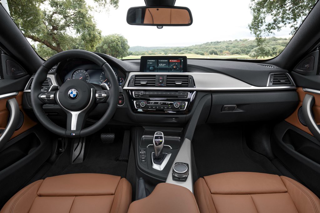 Экстерьер БМВ 4-серии Гран Купе выполнен в стиле купе, настоящего спортивного автомобиля с большими габаритами, но при этом великолепными характеристиками. Все боковые стекла без рам, большая крышка багажника, как у настоящего лифтбека, мощный капот с четкими гранями. Это создает впечатление спортивной выразительности. Передняя часть гармоничная с характерной двойной решеткой радиатора в хромированной окантовки. Передние фары с двумя мощными светодиодными лампами уже в базовой версии. Противотуманные фары также светодиодные, как и задние фонари. Фары головного света адаптивные, это позволяет динамически регулировать поток света учитывая скорость движения и угла поворота. Передний бампер выполнен в спортивном стиле с широким центральным воздухозаборником. В профиль можно увидеть нисходящую крышу, где в задняя часть является дверью багажного отделения с автоматическим управлением. Что бы открыть багажный отсек с помощью системы бесконтактного доступа, достаточно просто провести ногой под задним бампером. Задняя часть достаточно рельефная, двусоставные светодиодные фонари, мощный бампер с защитой и стильные патрубки выхлопной системы.