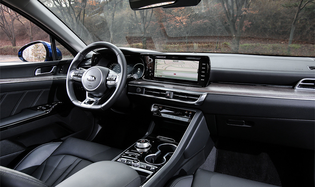 Что касается габаритов, то высота седана К5 уменьшилась на 20 мм по сравнению с текущим поколением KIA Optima, длина увеличилась на 50 мм, ширина осталась прежней. Колесная база стала больше на 45 мм и теперь составляет 2 850 мм. Внешне седан обзавелся сложной оптикой и фирменной радиаторной решеткой «Улыбка тигра», рельефным капотом и агрессивного облика бамперами. Задние фонари у машины было решено объединить линией стоп-сигнала. В салоне — новая медиасистема с экраном 10,25 дюйма и 12,3-дюймовый цифровой дисплей вместо традиционной комбинации приборов.