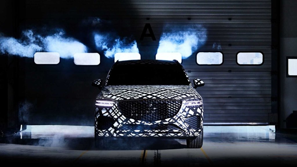 Genesis обнародовала первые официальные снимки кроссовера GV70. Внешность «паркетника» пока еще прячут под камуфляжной пленкой G-Matrix с затейливым принтом, однако можно рассмотреть некоторые черты его дизайна.