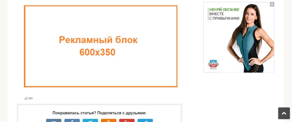 2. Размещение баннера 600х350 в конце статей на сайте — 1 000 руб/мес