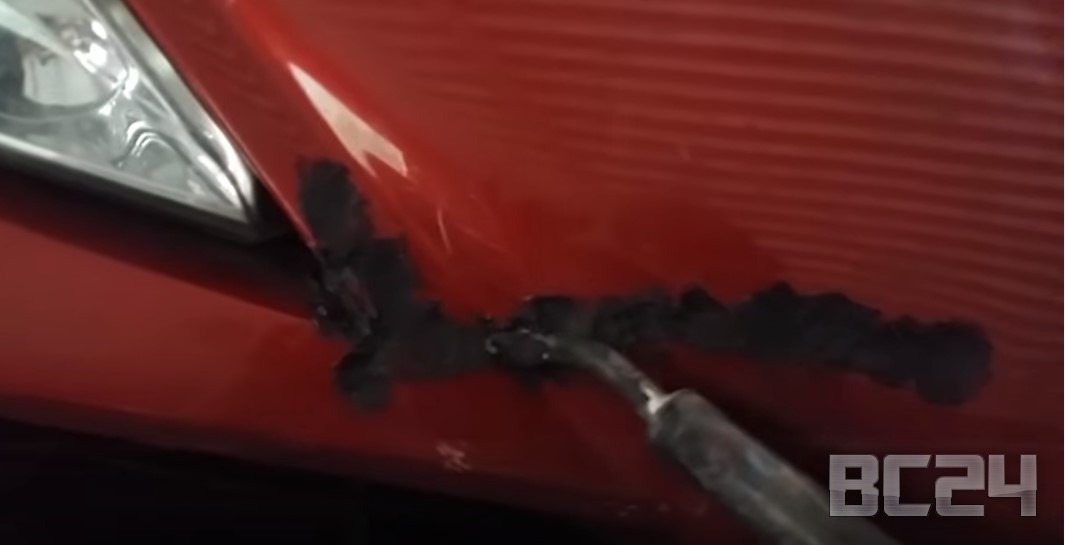 Ровняем бампер, чтобы расплавленный пластик от нашей пайки был идеально гладкий и ровный.