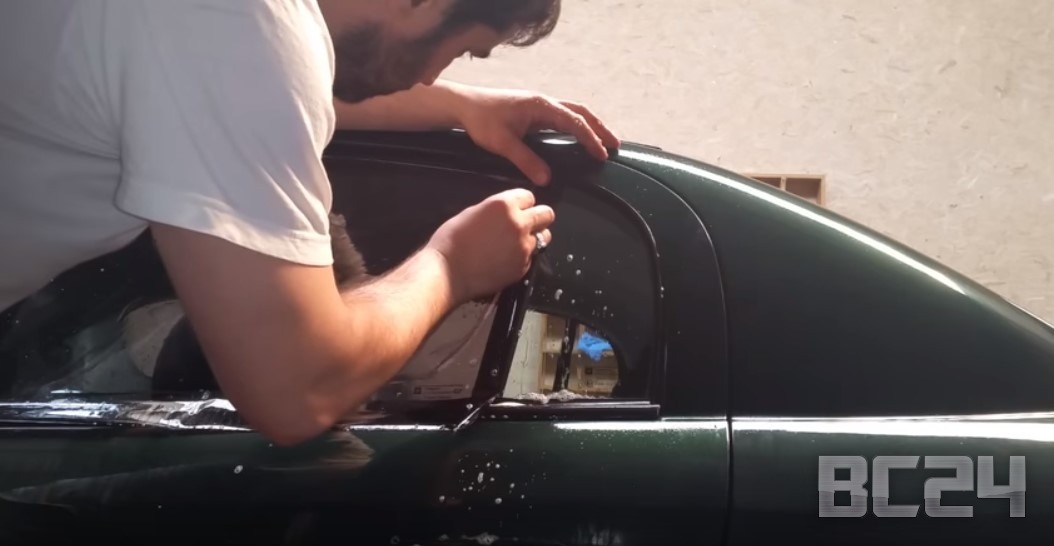 Главное выгнать весь воздух из под стекла и тонировки, обильно смачивать в процессе. И напомним, китайская пленка царапается и она очень тонкая, а американская пленка более плотная, тянучая и не царапается.