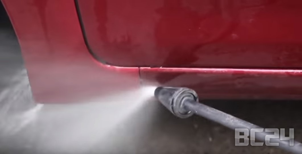Сначала необходимо сбить грязь и песок с кузова автомобиля, для этого окатываем ее из ведра несколько раз, если есть мини-мойка керхер, то вообще прекрасно.