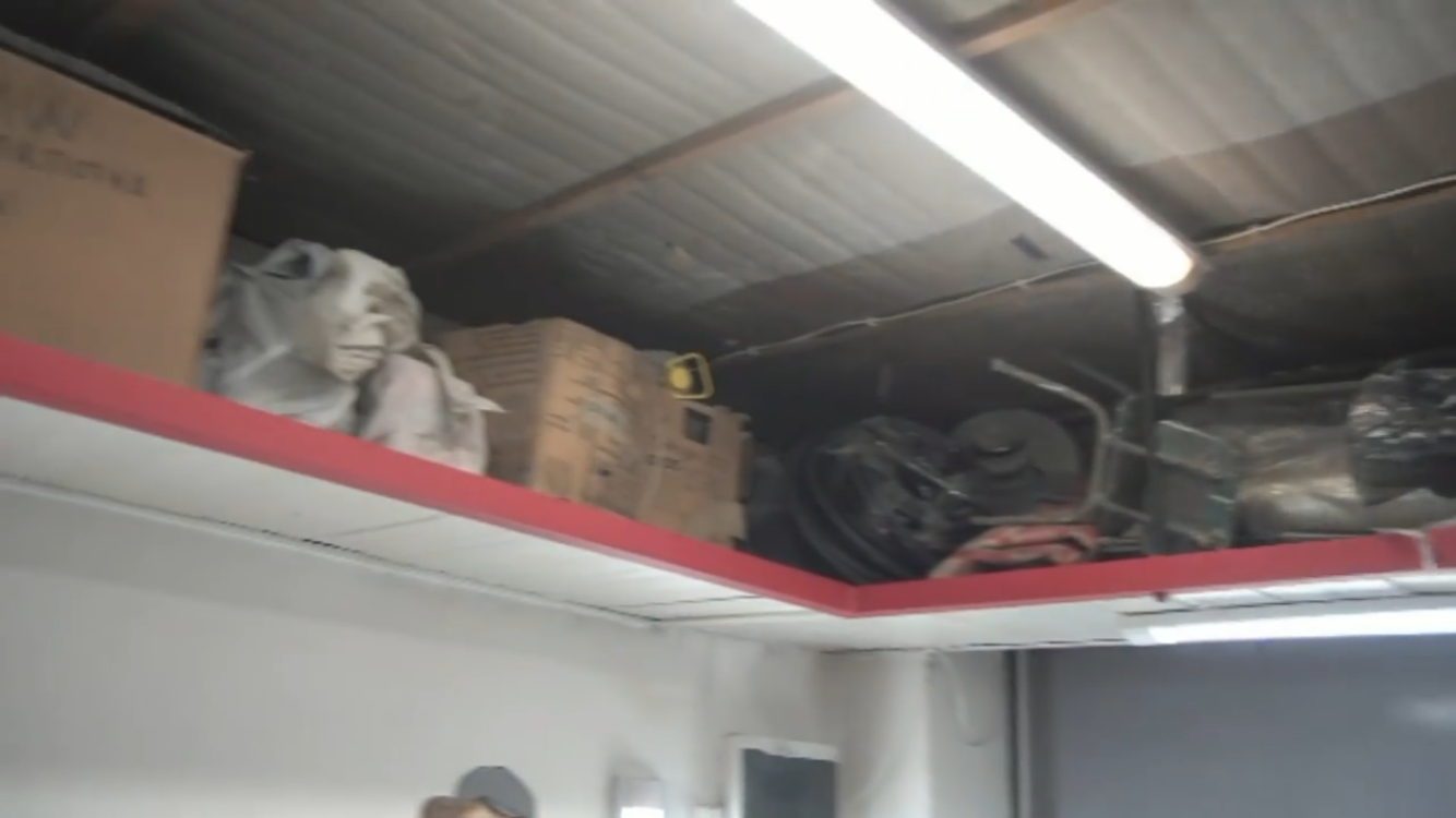 Можно поставить большую машину, при этом Вы обратите внимание, сколько всего – запчастей и прочего хлама сюда вмещается. У меня поверху везде всё завалено деталями, барахлом, но при этом полезное пространство не тратится.