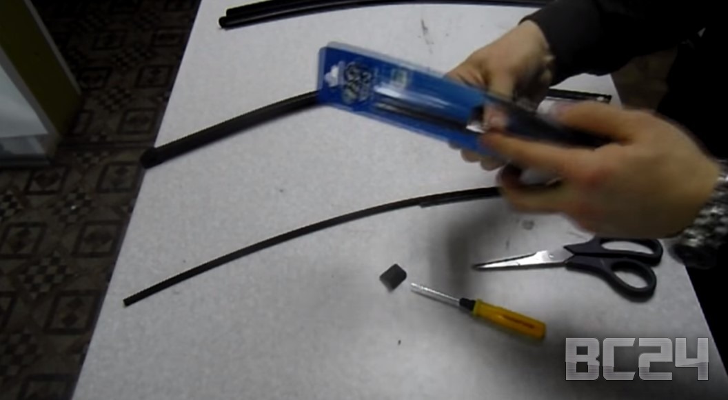 Как меняются резинки на каркасных щетках стеклоочистителя?