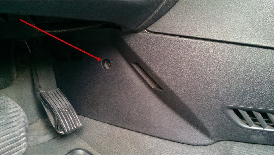 - открыть водительскую дверь и обнаружить над блоком педали часть панели, подлежащую демонтажу;